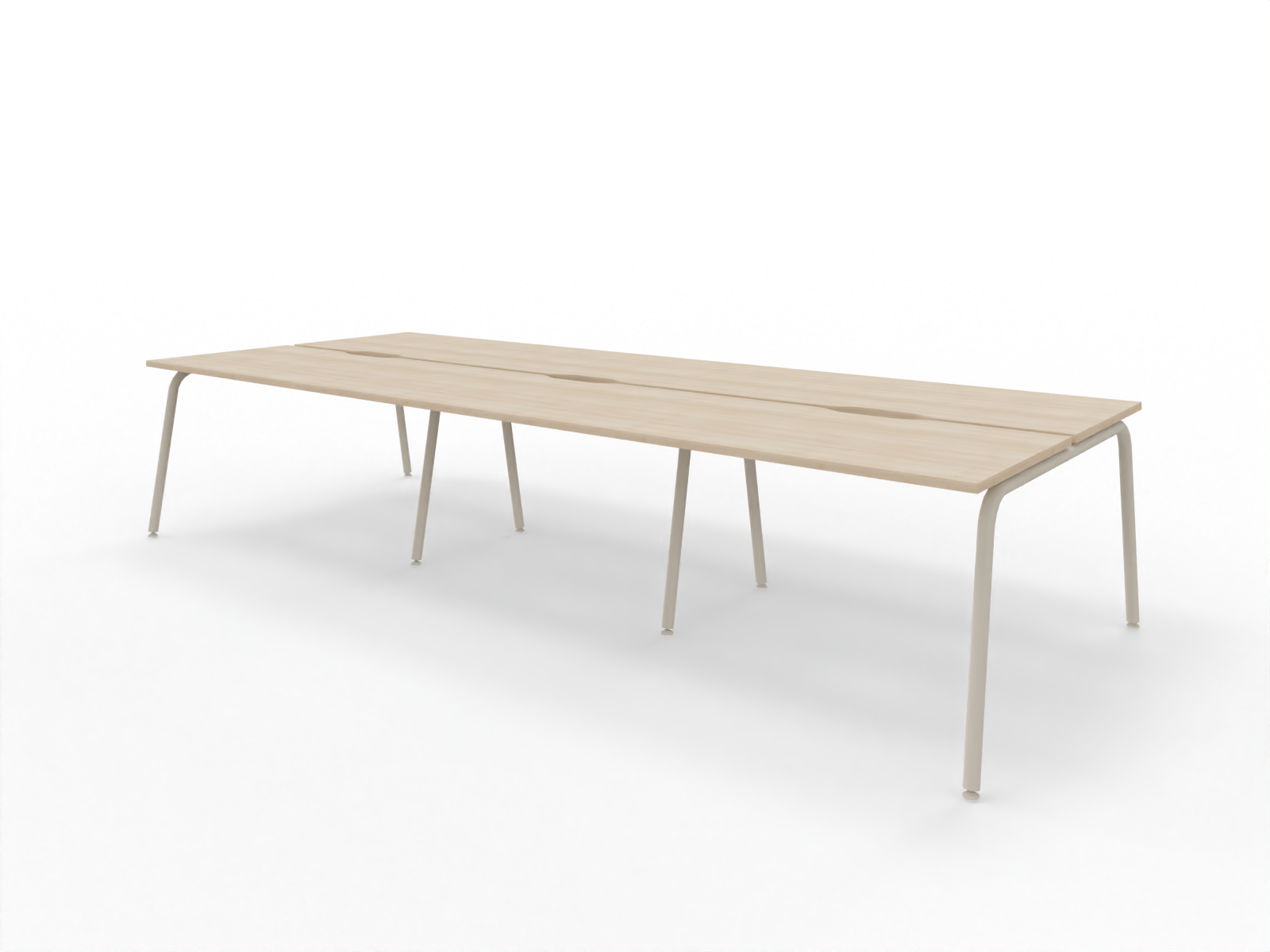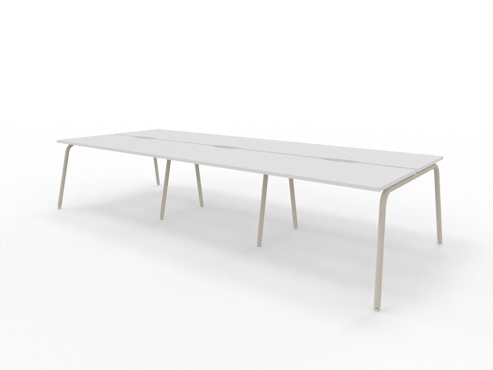 Соединение столешниц и каркаса с помощью винтов (металл-металл). Между столешницами зазор 50 мм для установки разделительных перегородок